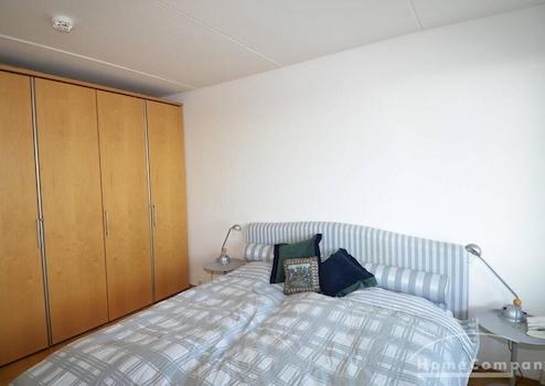 Das Schlafzimmer besitzt ein großes Doppelbett und einen Kleiderschrank mit genügend Stauraum. Durch die großen, mit moderner Isolierverglasung versehenen Fenster ist die Wohnung trotz der Lage an der Leipziger Straße ruhig und hell. Das Badezimmer ist funktional und modern.