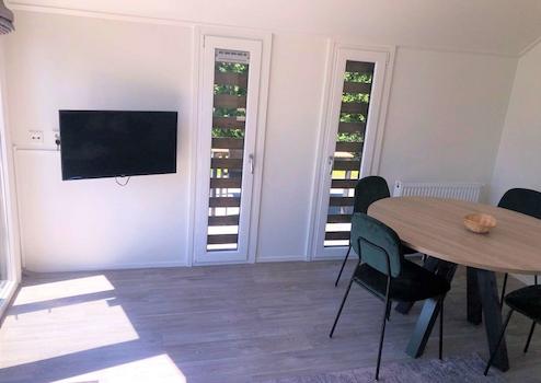 Das Ferienhaus 44 qm befindet sich auf einem Privatgrundstück 272 qm Die luxuriöse und moderne Küche ist mit allen modernen Annehmlichkeiten ausgestattet. Modernes Badezimmer. Zwei Schlafzimmer mit je 2 boxspring betten. Geräumige Wohnzimmer hat eine extra erhöhte Decke, so dass es sich sehr geräumig anfühlt. Der weitläufige Garten liegt direkt am aussenrand vom park mit viel privat sphäre Das Ferienhaus ist 2 Jahre alt und wurde vom jetzigen Eigentümer nur 3 Wochen genutzt.