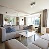 Wunderschönes, großes Wohnzimmer mit vielen Fenstern, die für viel Licht sorgen. Die Schiebetüren führen hinaus auf die möblierte Terrasse, wo Sie sich entspannen und genießen können. Hier finden Sie 2 sehr große Sofas und 4 Sessel und einen großen Esstisch mit 12 Stühlen. Für die Kleinen wurde eine richtige Spielecke eingerichtet. Die offene Küche befindet sich ebenfalls im Wohnzimmer, so dass Sie immer in Kontakt mit Ihren Mitbewohnern bleiben können.