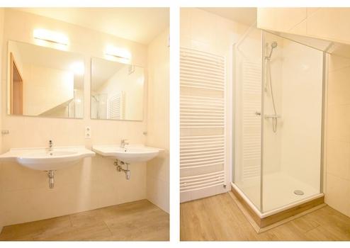 Badezimmer 4 hat eine Dusche und ein Waschbecken.