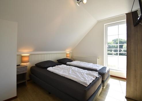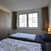 Schlafzimmer 4 hat 2 Boxspringbetten und einen Kleiderschrank.