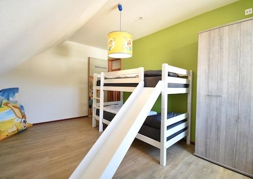 Das 6. Schlafzimmer ist ideal für Kinder mit einem echten Etagenbett mit Rutsche! Was für ein Spaß wird es in diesem Koos Konijn Schlafzimmer sein!