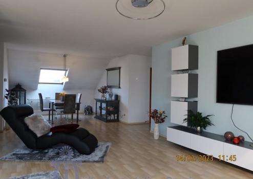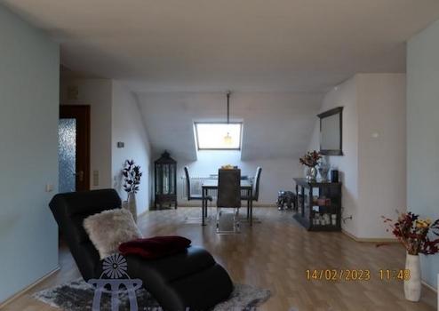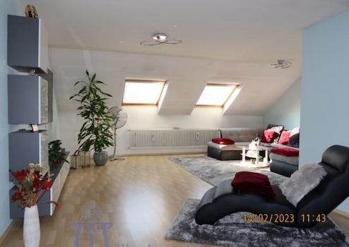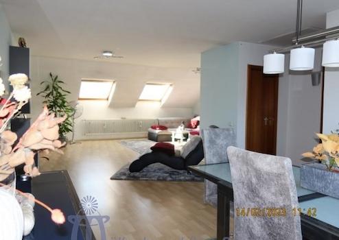 Die Wohnung im Obergeschoß hat eine Wohnfläche von ca. 117 m², die sich auf das ca. 44 m² große Wohn-Esszimmer, eine Küche mit moderner Einbauküche, 3 große Schlafzimmer, ein neuwertiges Bad und ein Gäste-WC verteilen.