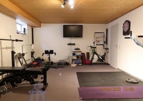 Im Kellergeschoß stehen neben den üblichen Kellerräumen ein ca. 30 m² großer ausgebauter Fitnessraum sowie ein ca. 30 m² großer Hobby- oder Partyraum mit Zugang zum Garten zur Verfügung, der auch als Gästezimmer genutzt werden kann.