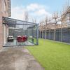 Der Garten hinten ist auch erreichbar durch ein Stahltor.