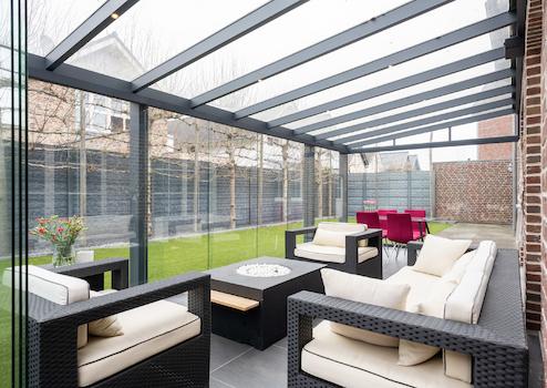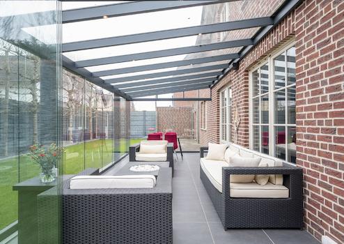 • Besonders schöner Wintergarten mit Glasschiebewänden.