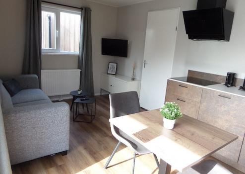 Schönes Chalet in attraktivem Park in Renesse. Dieses Delta Saffron aus dem Jahr 2020 wird jetzt komplett angeboten. Wohnzimmer Schönes großes Wohnzimmer mit feststehender Couch Küche Keuken Schlafzimmer 1 Schlafzimmer ...