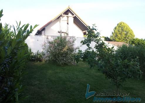 Das Grundstück hat eine Größe von ca. 1148 m², davon wären ca. 410 m² weiter bebaubar. Es ist eingezäunt, der Garten mit Bäumen und Sträuchern bepflanzt.