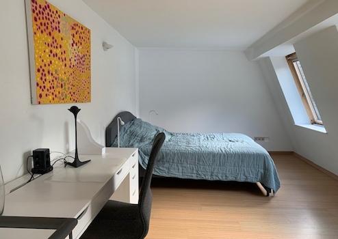 Über eine schmale Wendeltreppe erreicht man die darüber gelegenen privaten Rückzugsräume in der ersten Wohnebene mit Schlafzimmer und Bad, sowie in der zweiten Wohnebene mit einem weiteren geräumigen Schlafzimmer und Abstellkammer. In beiden Schlafräumen ist durch die jeweils vorhandenen Arbeitstische die Möglichkeit zum Home-Office gegeben.