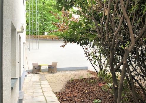 In der Eingangsebene befindet sich das Wohn- und Esszimmer. Über das bodentiefe Fenster tritt man auf die eigene begrünte Terrasse aus und genießt an den warmen Tagen die frische Luft. Auf der anderen Seite der Eingangsdiele samt Garderobe bietet die hochwertig eingerichtete Wohnküche alle Voraussetzungen zur genussvollen Befriedigung der leiblichen Bedürfnisse.