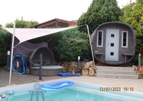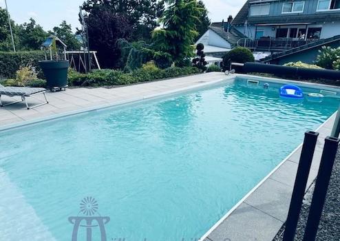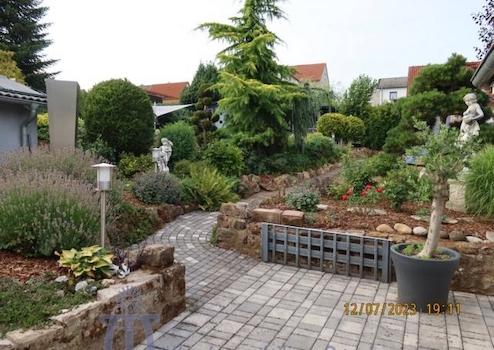 Der wunderschöne aufwendig und liebevoll angelegte Garten ist unterteilt in eine Grünanlage mit Rasenfläche, Ziersträuchern und Formgehölzen sowie einen Outdoor-Wellnessbereich mit einem ca. 9,20 m x 4,20 m großen Swimmingpool (beheizbar über Solar-Absorber), Fass-Sauna, einem wärmegedämmten Gartenhaus sowie einer großen überdachten Terrasse.