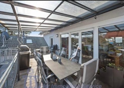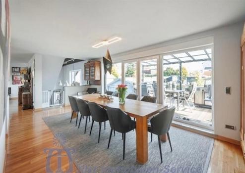 Vom Wintergarten gelangt man in die Küche sowie ein Esszimmer und in den großzügigen Wohn- und Essbereich.