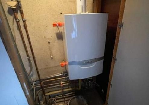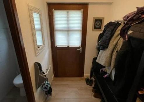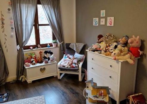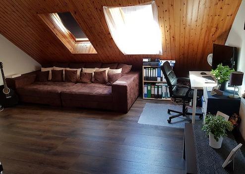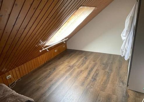 Im zweiten Obergeschoss angekommen finden sich hier zwei weitere Zimmer. Eines davon wird aktuell als Arbeitszimmer genutzt, das andere dient als Abstellraum. In diesem befindet sich auch der Zugang zur 2019 erneuerten Brennwerttherme. Außerdem befinden sich hier Vorbereitungen zur Installation eines weiteren Badezimmers.
