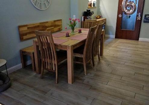 Im Zuge der vollständigen Sanierung im Jahr 2017 wurde die Raumaufteilung sowie die gesamte Ausstattung des Reihenhauses den modernen Wohnanforderungen angepasst. Dabei wurde der Boden aller Räume im Erdgeschoss vollständig gefliest, während in den oberen Stockwerken hochwertiger Laminatfußboden für eine wohnliche Atmosphäre sorgt. Im Zuge der Sanierung wurden auch alle Bandbeläge im gesamten Haus vollständig erneuert.