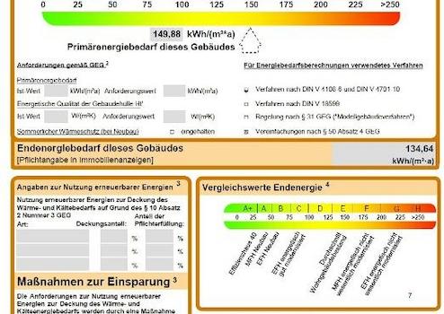 - Endenergiebedarf insgesamt: ca. 134,64 kWh/(m²a)