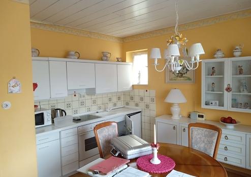 Die gemütliche Küche ist noch eingerichtet und in gutem Zustand - sie könnte mit übernommen werden.
