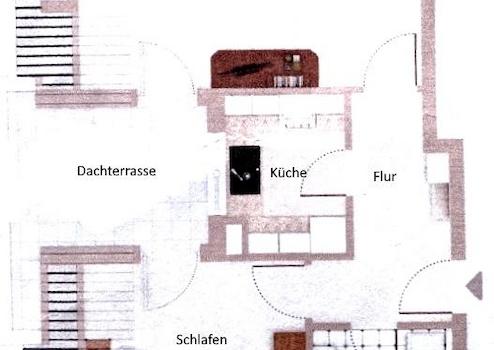 + Vollmöblierte Zweizimmerwohnung in zweiter Reihe mit einer sonnigen Dachterrasse