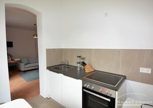 Neben der vollen Ausstattung mit Küchengeschirr verfügt die Küchenzeile außerdem über: Kühlschrank, Tiefkühlschrank, Elektroherd und Ofen und einem Waschtrockner. Ideale Verkehrsanbindungen zur U9 und U6 und perfekte Infrastruktur!