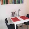 2 Zi.Whg., möbl., mit Balkon, im 1. OG rechts (z.T. mit Schrägen) eines 4 Fam.-Hauses. Z.T. mit offenem Fachwerk. Miete 900,- € (1 Person; bei 2 Personen etwas höhere Miete) inkl. Heizung, Wasser (50,- €). Waschmaschine und Trockner in separatem Raum. Strom ist sep. nach Verbrauch zu zahlen. Endreinigung nach Auszug 120,- €. DSL-Anschluss bzw. W-Lan vorhanden (gegen Aufpreis). Nur für Nichtraucher oder auf dem Balkon rauchen.