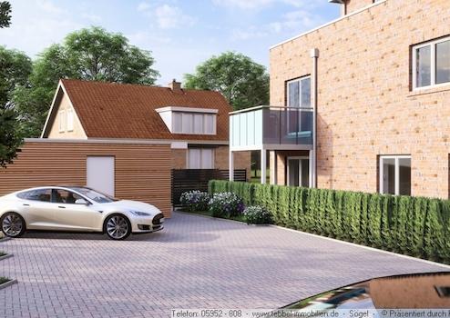 Dieses Mehrfamilienhaus bietet neben einer überschaubaren Größe von nur neun Eigentumswohnungen eine sehr gute und funktionale Raumaufteilung der einzelnen Eigentumswohnungen. Sie haben die freie Auswahl zwischen Zwei- und Drei-Zimmer-Wohnungen. Jede einzelne Wohnung wird hochwertig ausgestattet. Diese Wohnungen bieten Ihnen einen hohen Wohnkomfort und somit die gewünschte Lebensqualität. Sie erreichen alle Etagen bequem mit dem Aufzug, sodass Sie in jeder Lebenslage einen komfortablen Zugang zu Ihrer Wohnung genießen. Zu jeder Wohneinheit gehört eine Terrasse bzw. ein Balkon/Dachterrasse und ein PKW-Stellplatz. Diese Wohnungen werden zum schlüsselfertigen Festpreis inkl. Malerarbeiten und Bodenbeläge erstellt. Ihre individuellen Wünsche und Vorstellungen können bei der Planung berücksichtigt werden, soweit dies der Baufortschritt noch zulässt. Für weitere Fragen stehen wir Ihnen gerne zur Verfügung. Fordern Sie die unverbindlichen und detaillierten Unterlagen bei uns an. Die Grundrisse überzeugen mit einer modernen, zeitgemäßen und praktischen Raumaufteilung. Großzügige sowie teils bodentiefe Fenster bringen angenehmen Tageslichteinfall und ein lichtdurchflutetes Raumgefühl. Selbstverständlich werden die Fensterelemente (3-fach-verglast) mit Rollläden ausgestattet. Im Hinblick auf Nachhaltigkeit findet ein hoher energieeffizienter Standard Berücksichtigung. Das exklusive Badezimmer wird mit Waschbecken und der Duschbereich mit einer Trennwand / Abtrennung durch eine Abmauerung ausgeführt. Unter Energieeinsparaspekten wird eine Luft-/Wasser-Wärmepumpe verbaut. Für die Heizungsanlage erhält das Wohnhaus zusätzlich eine PV-Anlage inklusive Speicher. Alle Eigentumswohnungen verfügen über eine Fußbodenheizung, die über Fußbodenheizungsregler individuell zu steuern ist. Es werden moderne Bodenfliesen im Badezimmer, Flur und Abstellraum verlegt. Die Decken werden mit Raufaser tapeziert und weiß gestrichen. Die Wände werden weiß gestrichen. Der Wohnbereich Wohnen/Essen/Kochen sowie die Schlafräume erhalten einen hochwertigen Laminatboden. Diese Wohnung entspricht genau Ihren Vorstellungen und Wünschen? - Schicken Sie uns gerne eine schriftliche Anfrage oder rufen Sie uns einfach an. Sie haben ein zu groß gewordenes Haus und möchten sich mit dieser modernen Neubauwohnung verkleinern? Wir übernehmen für Sie gerne den Verkauf Ihrer Immobilie mit dem kompletten Service von A bis Z. Stimmen Sie jetzt einen unverbindlichen Beratungstermin mit uns ab. Chancen sind da, um sie zu nutzen - Sichern Sie sich jetzt eine dieser attraktiven Wohnungen in Sögel. Wir stellen Ihnen das Projekt mit allen Details gerne in einem persönlichen Beratungsgespräch vor.