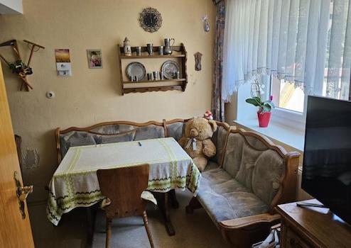 Kunststofffenster mit Isolierverglasung; Ölzentralheizung; WW über die Heizung; Tageslichtbad mit Dusche; die Böden sind gefliest oder mit Vinyl belegt; Balkon, Terrasse und Abstellraum; Garten; zusätzliches Grundstück (690 m²) mit eigener Zufahrt; ; die Immobilie kann zeitnah übernommen werden.