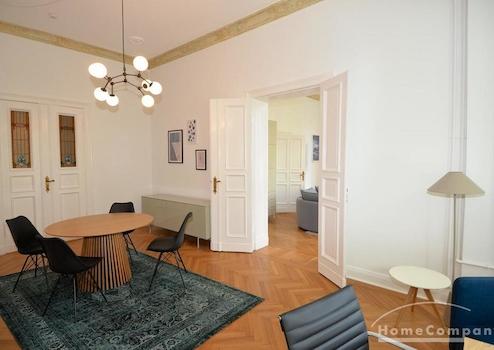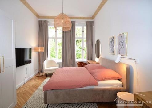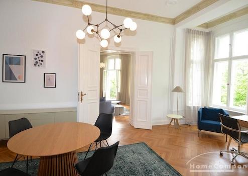 AG149168 Diese beeindruckend große, voll möblierte Wohnung mit drei Schlafzimmern befindet sich in einer charmanten historischen Stadtvilla im begehrten Ludwig Hoffmann Quartier in Pankow. Das denkmalgeschützte, ...