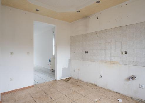 Geschlossene Küche (3,56 x 2,90 m) mit Fliesenboden ohne Anbauanordnung.