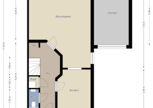 Garage (5,98 x 3,04 m) mit Schwingtor.