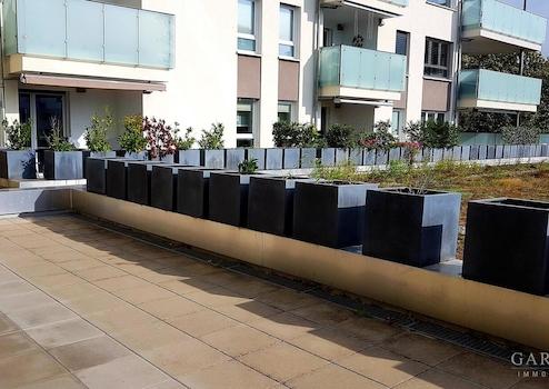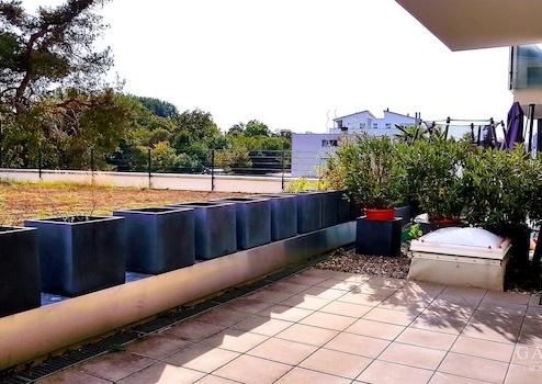 Alles ist schnell auch zu Fuß zu erreichen. Das Gebäude liegt zwar zentral, jedoch sind die Terrassen im ruhigen, inneren Grünbereich mit Blick auf die umliegenden, alten Baumbestände und einer