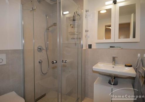 Sie besitzt einen schönen Balkon und eine vollausgestattete Küche und insgesamt handelt es sich hier um eine sehr helle Wohnung. Eine Waschmaschine ist auch vorhanden. Das Bad ist hell und modern und die Dusche ist ebenerdig.