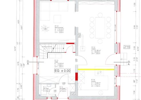 Der Ausbau der teils offenen, charismatisch geschnittenen Räume auch zur Sonnengartenterrasse erfolgte mit Fußbodenheizung und ist mit Objekt-Linoleum zu belegen, konzipiert.