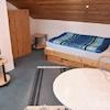 2. Schlafzimmer 10 qm mit Bett 1 m, Nachttisch, Schrank, Tisch, Stuhl, Fernseher, Duschbad.