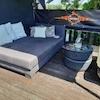 Individuell gestaltetes Badezimmer, Schlafzimmer, großes Wohnzimmer mit schöner, ca. 18 qm großer Südterrasse mit Fernblick von hier Gartenzugang mittels einer Außentreppe.