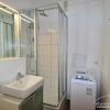 Ein-Zimmer-Wohnung in Mitte. Vollständig möbliert mit Bett, Tisch und Waschmaschine. Modern gefliestes Badezimmer mit Dusche. Im Flur befindet sich der Kleiderschrank.