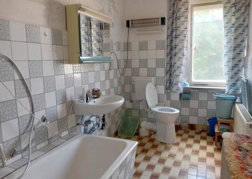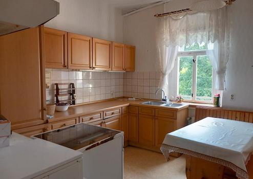 Steintreppen; Kachelöfen; Holz und Kunststofffenster; Holzfußböden Das Haus steht schon länger leer und muß dringend saniert werden.