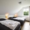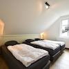 Das vierte Schlafzimmer hat 2 Boxspringbetten und einen Kleiderschrank.