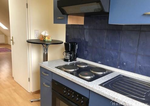4 Zi.-Maisonette-Whg., möbliert, 1. und 2. OG, mit Balkon. Im 1. OG: 1 Wohnzimmer, 1 Schlafzimmer, 1 Gäste-/Kinder- o. Arbeitszimmer. Im 2. OG (gleichzeitig DG, mit Schrägen): 1 gr. Wohn-/Schlafraum, Bad mit Dusche (ohne Fenster), offene Küche. Miete 2080,- € inkl. 175,- NK und Energiekostenvorauszahlung (200,- €). Entsprechend höhere Miete bei mehr als 2 Personen. Nur für NR.