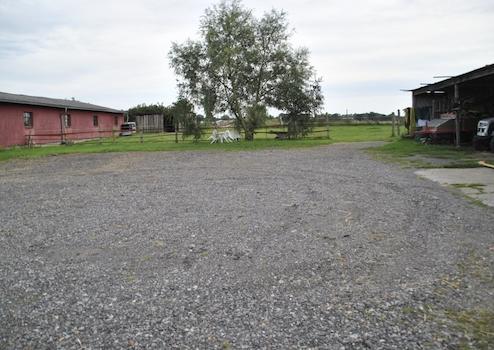 Die Zufahrt erfolgt über einen eigenen Beton Weg und führt zu einem groß angelegten geschotterten Parkplatz.