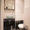 Das Badezimmer ist ein Platzwunder. Auf kleinstem Raum wurde ein schickes Duschbad gezaubert.