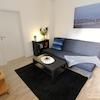 Küche mit Kühl-Gefrierschrank, Mikrowelle und Inventar, saniertes Duschbad mit Fenster, großer Sat-Fernseher, Stereo-Anlage. Außenterrasse auf den Hof zur Mitbenutzung.