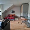 Geschmackvoll eingerichtet. Laminatboden, Doppelbett, großer Kleiderschrank, Sofa, Schreib-Essplatz mit Stühlen.