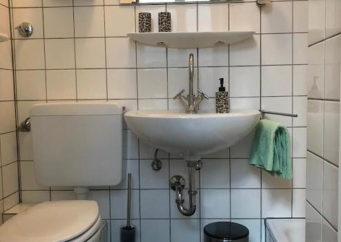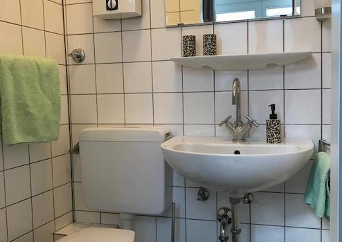 Eine Waschmaschine und ein Trockner stehen im Keller zur Verfügung.