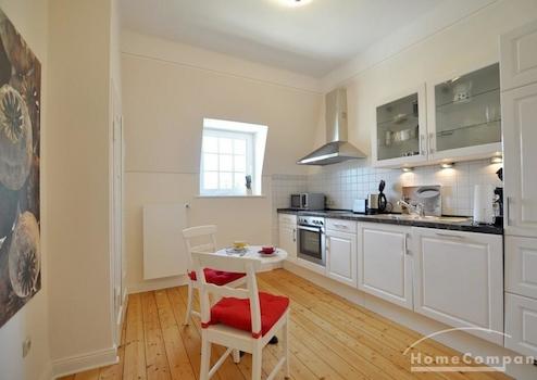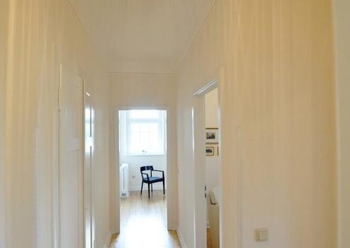 Wohn- / Esszimmer, Schlafzimmer mit französischem Bett, Arbeits- /Gästezimmer, Tageslichtbad vollständig erneuert in einem klassischen Design und mit großer Dusche, vollständig ausgestattete Küche, separater Abstellraum im Treppenhaus, Bettwäsche und Handtücher werden gestellt