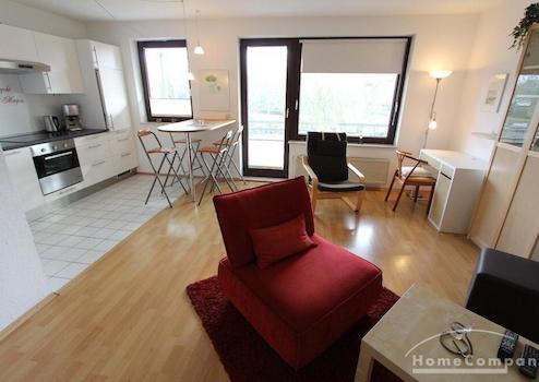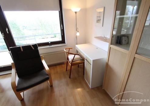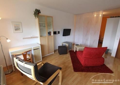 Dieses hübsche Appartment in in drei Bereiche aufgeteilt. Einbauküche mit Theke, Wohnen-Arbeiten, Schlafen. Der Balkon ist sehr groß und bietet einen schönen Einblick. Mit Abstellraum im Keller.