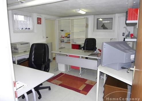 Im Keller befinden sich Arbeitszimmer/Hobbyraum, Vorratsraum, Waschküche mit Waschmaschine und Trockner sowie der Heizraum. Ein zusätzlicher Kühlschrank steht im Flur.