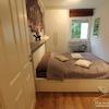 Im Schlafzimmer steht ein solides 140er Bett und ein ausreichend großer Kleiderschrank.