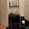 Das Badezimmer ist ein Platzwunder. Auf kleinstem Raum wurde ein schickes Duschbad gezaubert.