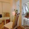 Das Appartment ist ausgestattet mit einem 140er Doppelbett, einem Fernsehgerät, einem kleinen Tisch mit Stühlen und einem gemütlichen Sessel. Die Pantryküche ist clever in einem großen Schrank verbaut, so dass man den Raum von der Küche trennen kann. Ein traumhaftes Duschbad mit Dusche und schwarzen Marmorfliesen rundet das einladende Angebot ab.