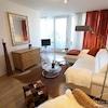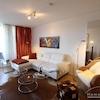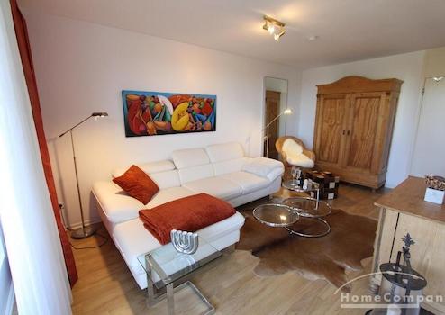 Dieses schön aufgeteilte 1,5-Zimmer-Appartement verfügt über einen großzügigen lichtdurchfluteten Wohnraum. Das Sofa kann auch als Gästebett genutzt werden.