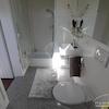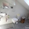 Tageslichtbadezimmer mit Marmormboden und Dusche.
